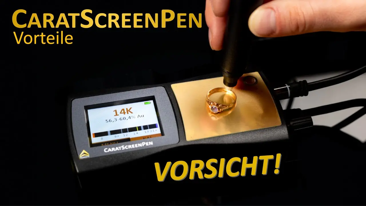 Fälschungen kommen nicht nur bei Münzen und Barren vor. Auch bei Schmuck tauchen immer häufiger gut gemachte Fälschungen aus Falschgold oder unterlegierte Schmuckstücke auf. Der CaratScreenPen bestimmt den Goldgehalt an der Oberfläche der Schmuckstücke und bietet Ihnen somit Sicherheit beim An- und Verkauf von Goldschmuck. Dieses Video erklärt Ihnen die wichtigsten Eigenschaften und Vorteile des CaratScreenPen für die unabhängige und diskrete Prüfung von Goldschmuck.