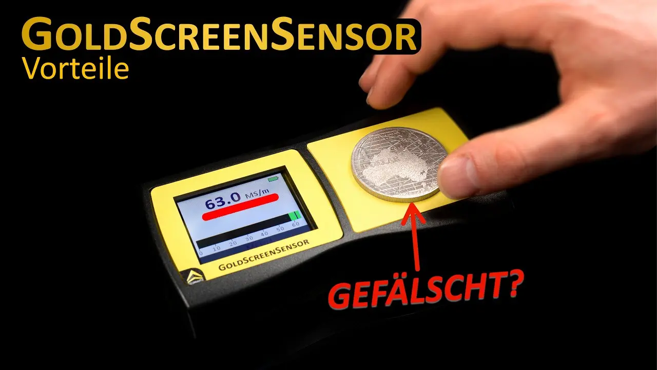 In diesem Video präsentieren wir Ihnen unser elektronisches Goldprüfgerät für Edelmetallmünzen und -barren, unseren GoldScreenSensor. Viele Anlagemünzen wie die American Eagle und der Krügerrand, aber auch Barren in Blistern werden sehr professionell gefälscht. In diesem Video erklären wir Ihnen die wichtigsten Eigenschaften und Vorteile des GoldScreenSensors für die unabhängige und diskrete Prüfung von Edelmetallen.