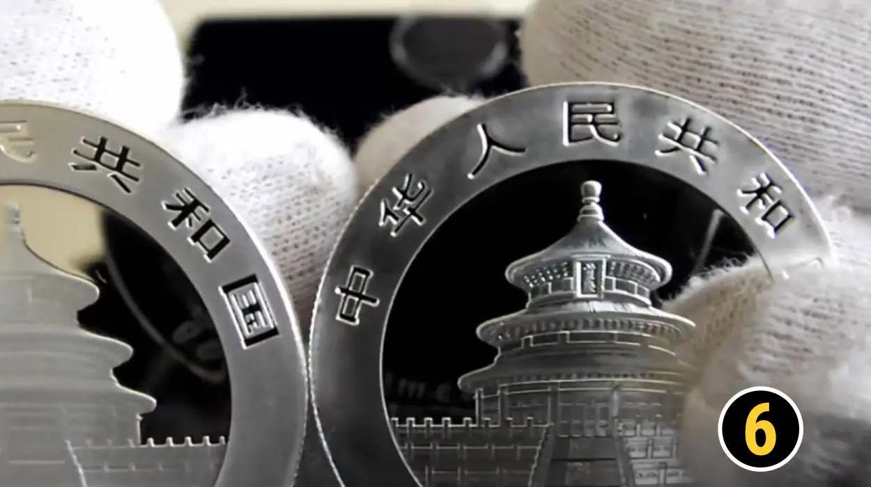 Bild 6: Vergleich der Fälschung (rechts) mit einer echten Silber-Panda-Münze (links).