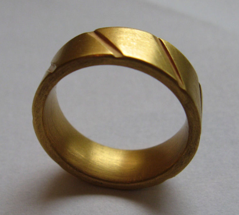 Hier wurde derselbe Ring mit einer 20 µm starken Goldschicht überzogen. Durch die Vergoldung erhält er ein völlig anderes Erscheinungsbild – elegant und edel, bei gleichzeitig unveränderter Stabilität des Wolframcarbid-Kerns.