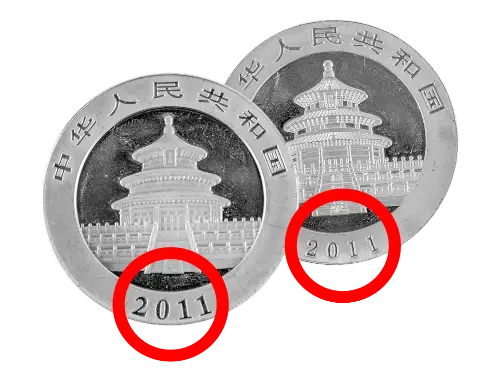 Ein erster, einfacher Silbertest ist der Vergleich des Prägebildes von Münzen oder Barren mit Produktbildern des Herstellers (hier links das Original, rechts die Fälschung). Stimmen die Proportionen, erscheint die Prägetiefe wie bei den Originalen, sind alle Elemente vorhanden? Diese und weitere Fragen zu den Details der Silbermünzen und Barren können erste Hinweise auf das Vorliegen einer Silberfälschung geben. Besonders wichtig: sollte das Objekt eine geriffelte oder eine glatte Rändelung haben? Mit Hilfe einer Lupe können Sie auch feinere Details im Münzbild untersuchen. Bei Fälschungen kommt es oft vor, dass die feinen Details des Prägebildes nicht exakt nachgebildet wurden. Dazu muss man natürlich die Merkmale genau kennen. Bedenken Sie jedoch, dass Fälscher ihre Repliken stets weiterentwickeln und man sich deshalb nicht auf diese Methode allein verlassen sollte.